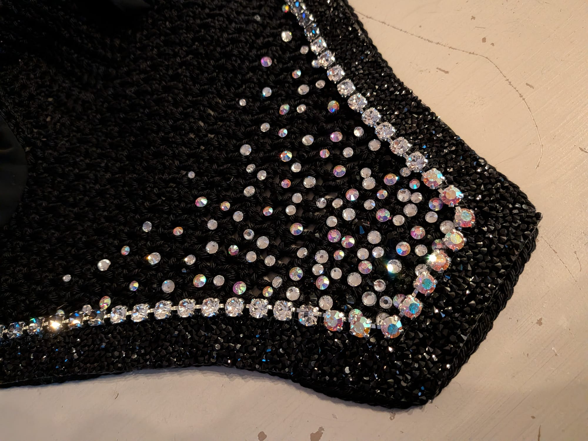 Das Modell Diamond Deluxe ist kein Detail – es ist ein Statement. Denn mehr Glitzer geht nicht. Jeder einzelne Kristall wird von Hand gesetzt und vernäht. Das Ergebnis ist kein gewöhnlicher Glanz, sondern eine Tiefe und Brillanz, die sofort auffällt und den Blick hält. Über 80 präzise platzierte Kristalle erzeugen ein lebendiges Funkeln, das sich mit jeder Bewegung verändert. Verarbeitet werden ausschließlich hochwertige Kristalle aus Österreich oder von Preciosa – für ein Glitzern , das sichtbar über dem Standard liegt. Farben, Strukturen und Details folgen keinen Vorgaben, sondern deinem Anspruch. Ob elegant oder bewusst extravagant: Diamond Deluxe passt sich nicht an – es definiert den Look. Dicht gesetzte Strasssteine entfalten ein intensives, lebendiges Funkeln mit unverkennbarer Präsenz. Jeder Kristall wird in präziser Handarbeit aufgebracht und sorgt für eine makellose, gleichmäßige Brillanz. Die edle Glitterbordüre setzt einen feinen, leuchtenden Abschluss und verstärkt die luxuriöse Ausstrahlung des Modells.